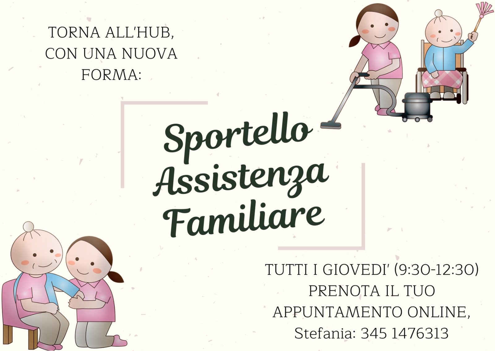 - Tutti i giovedì 9.30/12.30 – Sportello di Assistenza Familiare (da remoto).