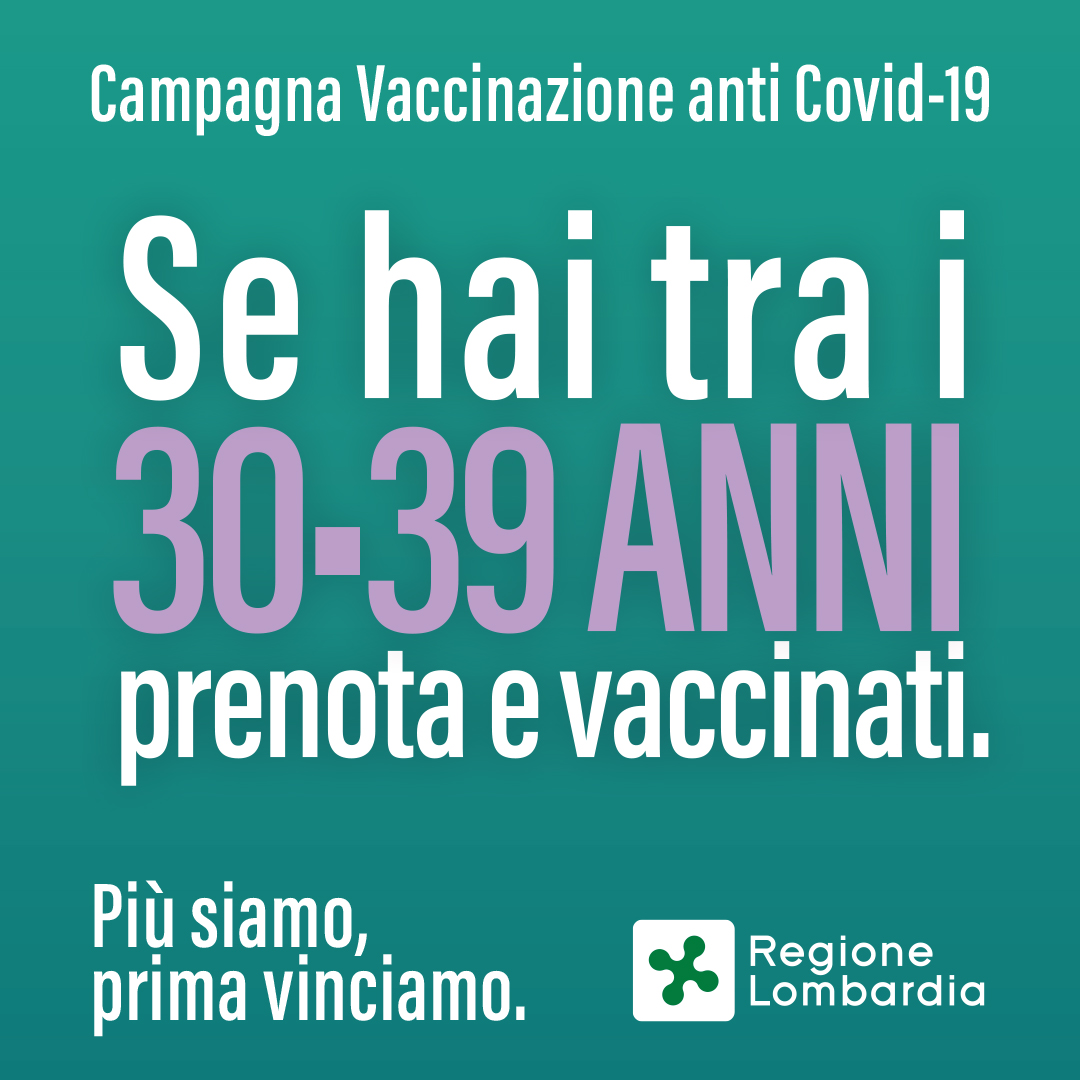 Dal 27 maggio 2021 possono accedere alla piattaforma di prenotazione del vaccino anti Covid-19 anche i cittadini appartenenti alla fascia di età 30-39 anni.