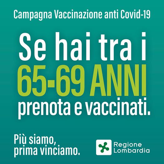 A partire dalle ore 8:00 del 19 aprile sarà possibile prenotare la vaccinazione anti Covid-19 anche per le persone di età compresa tra i 65 e i 69 anni.