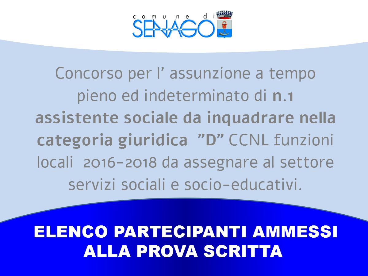 Elenco ammessi alla prova scritta CONCORSO PER L’ASSUNZIONE A TEMPO PIENO ED INDETERMINATO DI N. 1 ASSISTENTE SOCIALE DA INQUADRARE NELLA CATEGORIA GIURIDICA “D” CCNL FUNZIONI LOCALI 2016-2018 DA ASSEGNARE AL SETTORE SERVIZI SOCIALI E SOCIO-EDUCATIVI