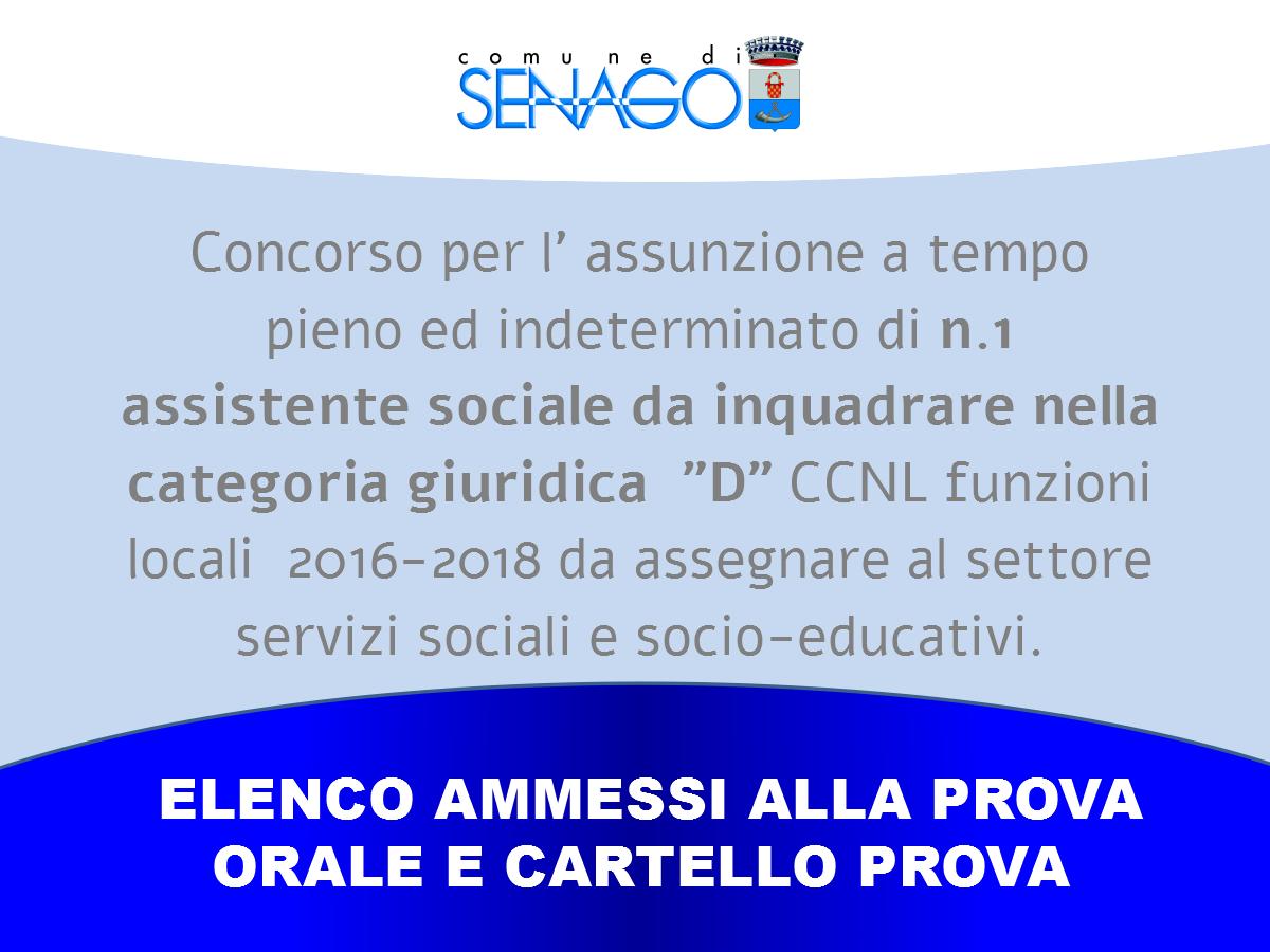 Elenco ammessi alla prova orale e cartello prova CONCORSO PER L’ASSUNZIONE A TEMPO PIENO ED INDETERMINATO DI N. 1 ASSISTENTE SOCIALE DA INQUADRARE NELLA CATEGORIA GIURIDICA “D” CCNL FUNZIONI LOCALI 2016-2018 DA ASSEGNARE AL SETTORE SERVIZI SOCIALI E SOCIO-EDUCATIVI