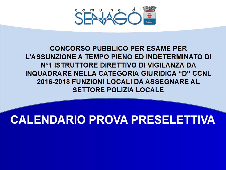 Calendario Prova preselettiva per il concorso di esame n. 1 Istruttore Direttivo di Vigilanza Cat. “D”, da destinare al Settore di Polizia Locale