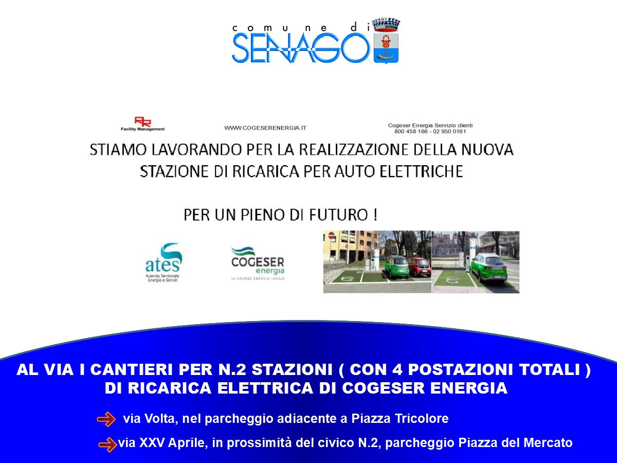 COLONNINE ELETTRICHE : A SENAGO AL VIA I CANTIERI PER N.2 STAZIONI ( CON 4 POSTAZIONI TOTALI ) di ricarica elettrica di COGESER Energia