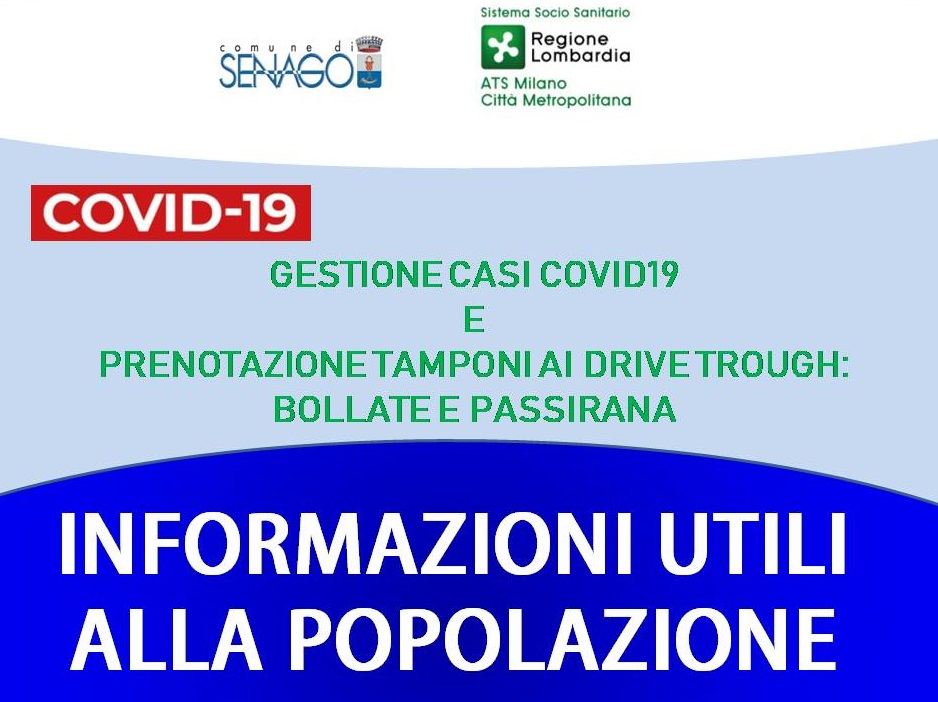covid19 INFO UTILI: GESTIONE CASI COVID19, prenotazione tamponi DRIVE TROUGH sede Bollate e sede Passirana