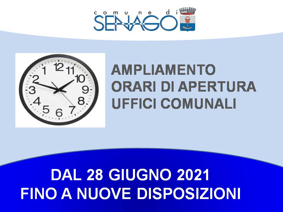 Dal 28 giugno 2021: Ampliamento Orari di apertura al pubblico degli uffici comunali. Nuova Ordinanza n. 95 del 17 giugno 2021
