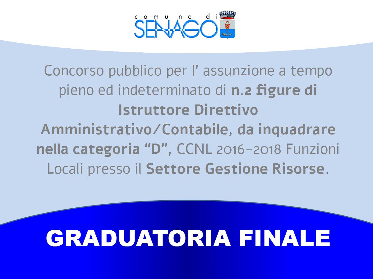 Graduatoria Finale CONCORSO PUBBLICO PER ESAMI, PER L’ASSUNZIONE A TEMPO PIENO ED INDETERMINATO DI N. 2 FIGURE DI ISTRUTTORE DIRETTIVI AMMINISTRATIVO/CONTABILE, DA INQUADRARE NELLA CATEGORIA “D”, CCNL 2016-2018, DA ASSEGNARE AL SETTORE GESTIONE RISORSE
