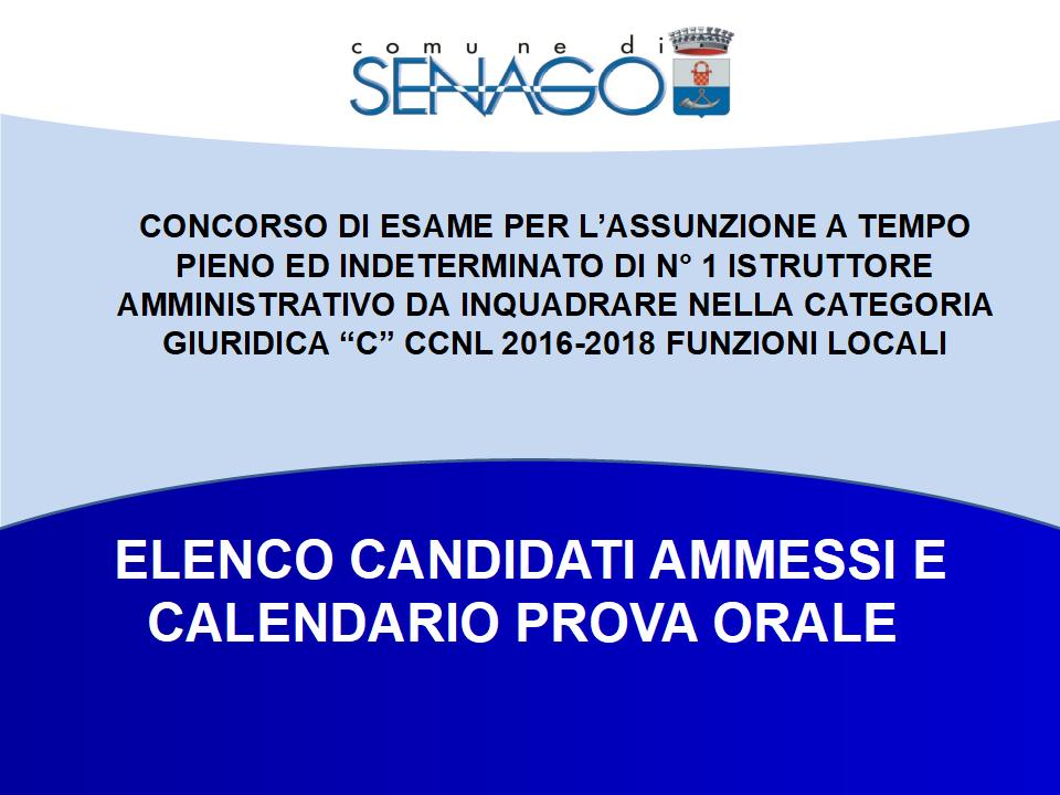Elenco candidati ammessi alla prova orale e calendario prova orale per il concorso di esame per l’assunzione a tempo pieno ed indeterminato di n° 1 istruttore amministrativo da inquadrare nella categoria giuridica “c” ccnl 2016-2018 funzioni locali