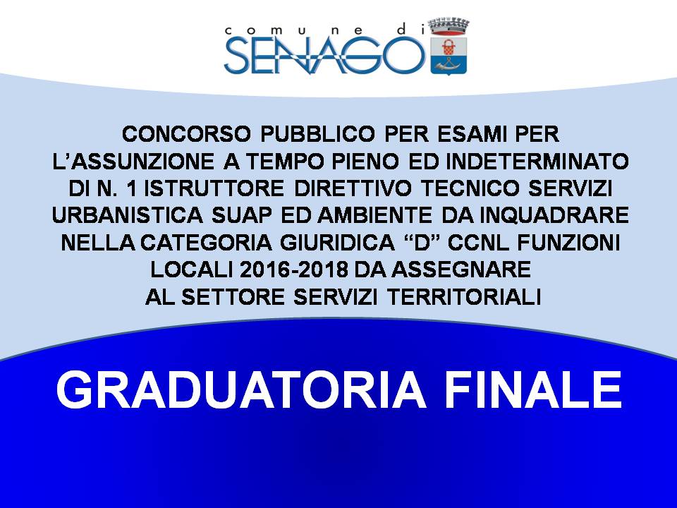 GRADUATORIA FINALE concorso pubblico per esami per l’assunzione a tempo pieno ed indeterminato di n. 1 istruttore direttivo tecnico servizi suap ed ambiente da inquadrare nella categoria giuridica “d” ccnl funzioni locali 2016-2018 da assegnare al settore servizi territoriali