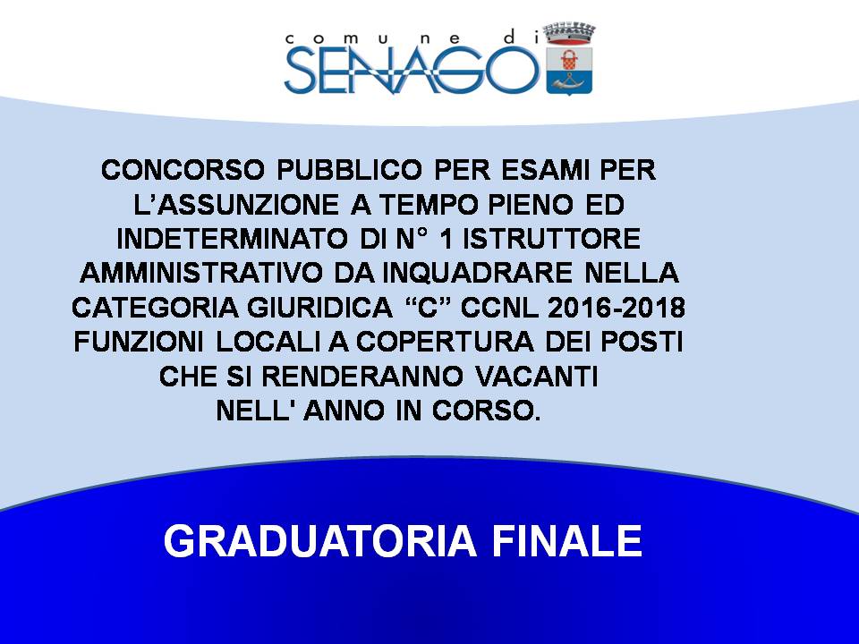 Concorso pubblico per esami per l’assunzione a tempo pieno ed indeterminato di n. 1 Istruttore Amministrativo da inquadrare nella categoria giuridica “C” CCNL 2016-2018 Funzioni Locali a copertura dei posti che si renderanno vacanti nell’ anno in corso- GRADUATORIA FINALE
