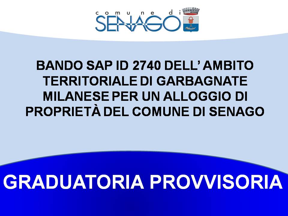 Graduatoria provvisoria- Bando Sap id 2740 dell’ ambito territoriale di Garbagnate Milanese per un alloggio di proprietà del Comune di Senago