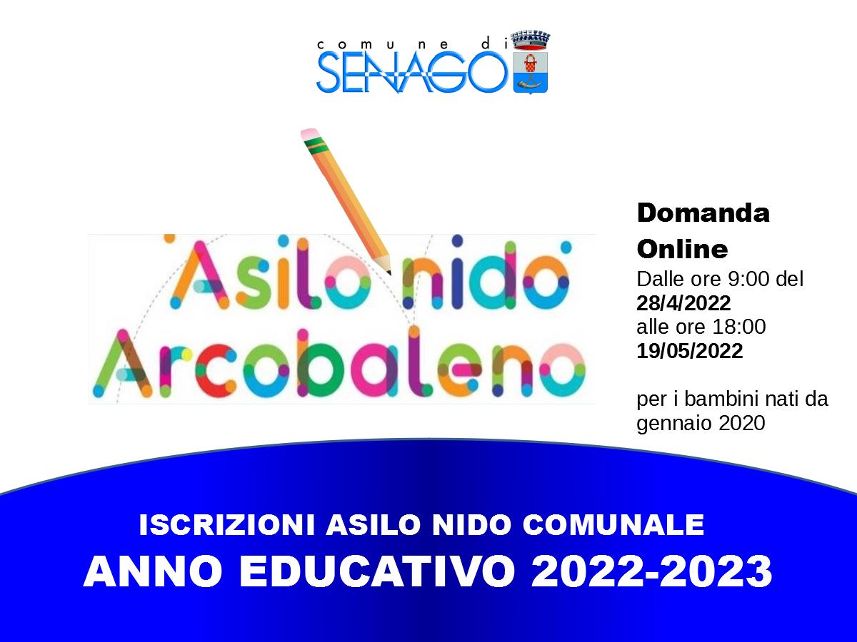 Dalle ore 9:00 del 28/04/2022 alle ore 18:00 del 19/05/2022 sarà possibile effettuare l’iscrizione all’Asilo Nido comunale “ARCOBALENO” per l’anno educativo 2022/2023.