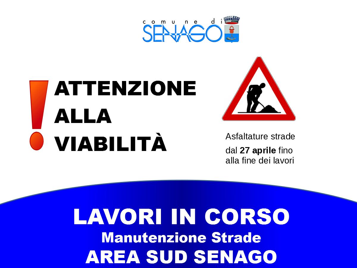 Si informa la Cittadinanza che nell’ area  sud di Senago sono in corso lavori di asfaltatura strade da oggi 27/04/2022 fino ai prossimi giorni.