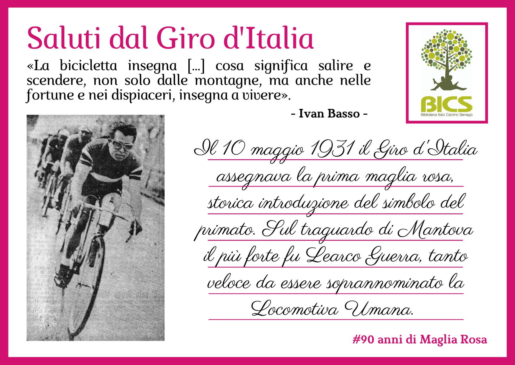 Per l’occasione la BICS propone la rubrica Saluti dal Giro d’Italia – una raccolta di cartoline di ricordi per celebrare i 90 anni della Maglia Rosa.