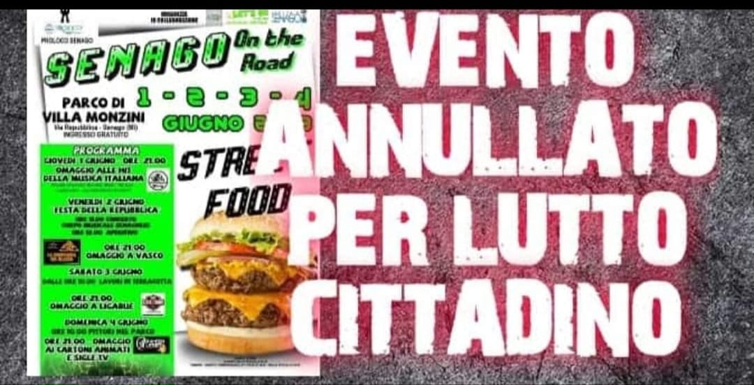 Si rende nota la Cittadinanza che l’evento “SENAGO ON THE ROAD”, è STATO ANNULLATO PER LUTTO CITTADINO