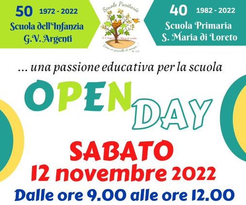 OPEN DAY: SCUOLA DELL’INFANZIA PARROCCHIALE G.V. ARGENTI – SCUOLA PRIMARIA PARITARIA S. MARIA DI LORETO