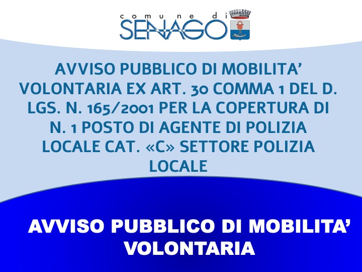 Si rende nota la cittadinanza l’elenco dei candidati ammessi al colloquio in seguito alla pubblicazione dell’AVVISO PUBBLICO DI MOBILITÀ VOLONTARIA EX ART. 30 COMMA 1 DEL D. LGS. N. 165/2001 PER LA COPERTURA DI N. 1 POSTO DI AGENTE DI POLIZIA LOCALE CAT. “C”SETTORE POLIZIA LOCALE. In allegato l’elenco dei candidati ammessi.