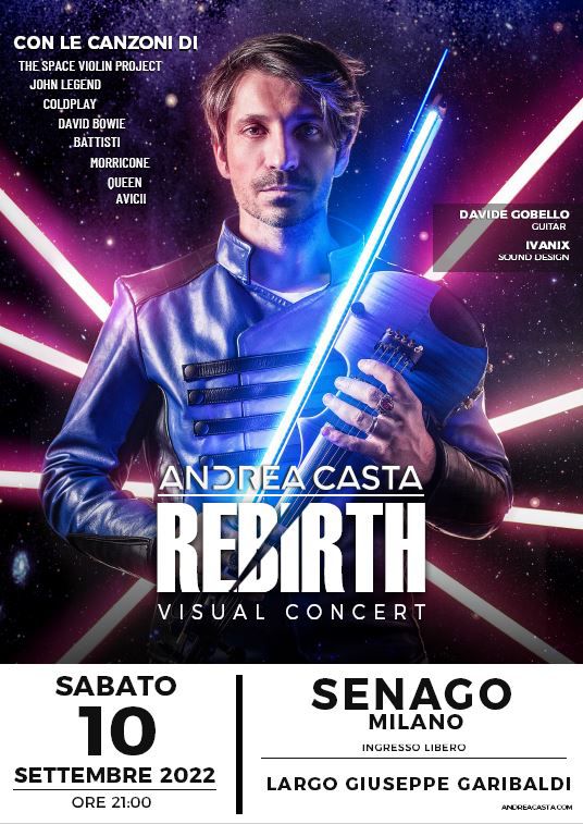 Il violinista “Jedi” chiuderà a Senago, unica tappa lombarda all’aperto, il suo: “THE SPACE VIOLIN – VISUAL CONCERT”. Dopo 100 tappe per tutta Europa, Andrea Casta, SABATO 10 SETTEMBRE ALLE ORE 21.00, chiuderà a Senago il suo tour estivo all’aperto nell’area teatro allestita in Largo Garibaldi per la Festa Patronale 2022 “Senago Sotto le Stelle”.... Continua a leggere